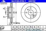 Partea de montare punte fata Dinamica frânare/conducere pentru vehicule cu ABS Diametru [mm] 257 mm Grosime minima [mm] 20 mm Tip disc frâna ventilat Suprafata acoperit (cu un strat protector) Numar gauri 4