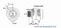 Tensiune [V] 12 V Amperaj [A] 80 A Directia de rotatie rotatie contrar acelor de ceasornic Articol extins/Info extins cu regulator integrat Conector/clema fara conector pentru turometru Numar nervuri 6 Role cu rola curea Diametru [mm] 74 mm