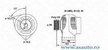 incepand cu an fabricatie 05/1993 Tensiune [V] 14 V Curent de incarcare generator [A] 120 A Diametru [mm] 48 mm Role cu fulie combinata Numar de striatii 6